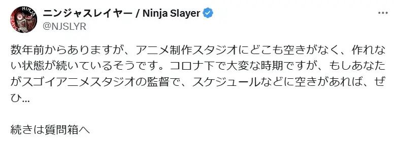 遺憾的是,《忍者殺手》這個IP的影響力,或許已經支撐不起第二季動畫的投資。官方其實在2021年已經做出過回應,說是數年前有過一次製作第二季的機會,可惜當時聯繫上的幾家動畫公司都沒有檔期,動畫製作便一拖再拖,拖到今天第二季的企劃怕是早就涼透了。