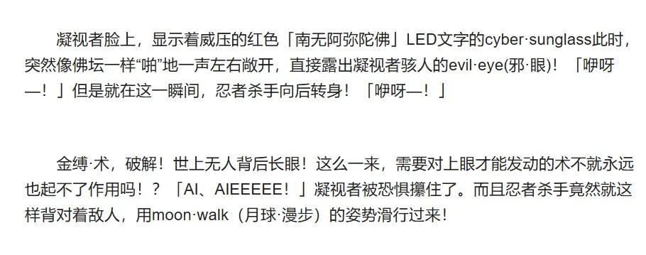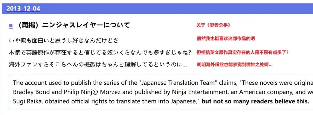 不過隨着作品的熱度逐漸升溫,一部分讀者卻犯起了嘀咕:如此莫名其妙的文風和設定,難免存在搞行爲藝術的嫌疑——所以這世上真的存在所謂的《忍者殺手》英文原著嗎?