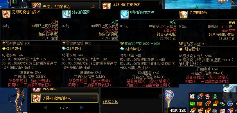 融合石是特化覺醒的關鍵,建議至少需要湊齊覺醒4件套纔開始更換,如果沒有太初融合石的話,也可以用史詩融合石替代(無限可能痕跡+無限可能流動)。
