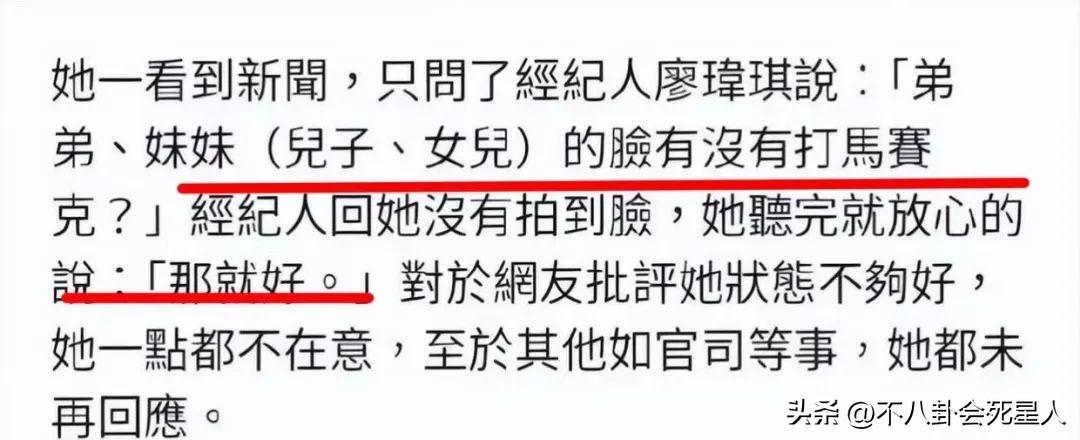 關於大家對她外貌上的評價,大S並不在意,只關心孩子有沒有被打碼,從這點來看,她對孩子還是比較上心。