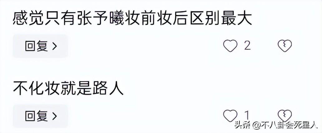 值得注意的是,不僅張予曦在節目上是素顏出鏡,陳昊宇、鄭妮可、柳巖等等也都素顏了,看到她們化完妝後的模樣,評論區都說張予曦反差最大。