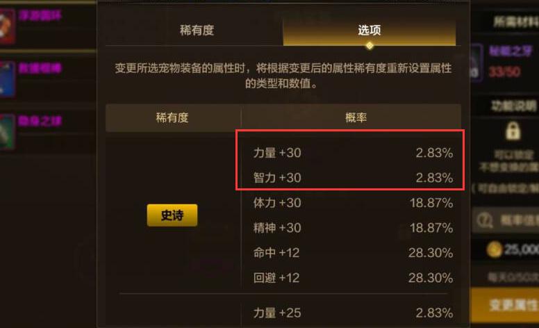以紅色寵物裝備爲例,洗出“史詩詞條”的概率本來就很小了,還要洗出“30力量/智力”的概率就更小了,顯示概率僅爲2.83%!