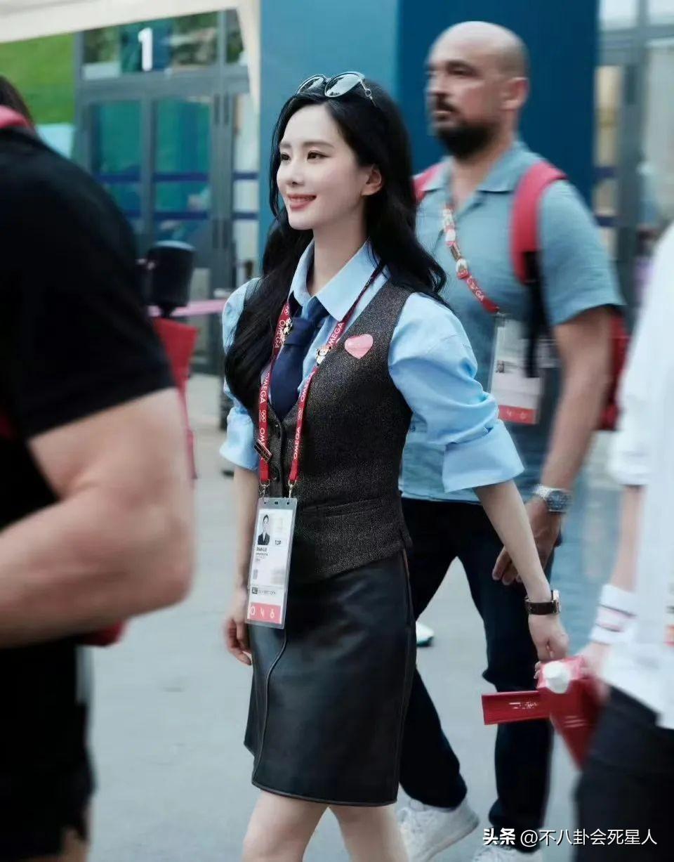 第三套職業套裝裙給人感覺又美又颯,劉詩詩化身御姐,幹練又利落,美豔又時尚,讓人過目不忘。