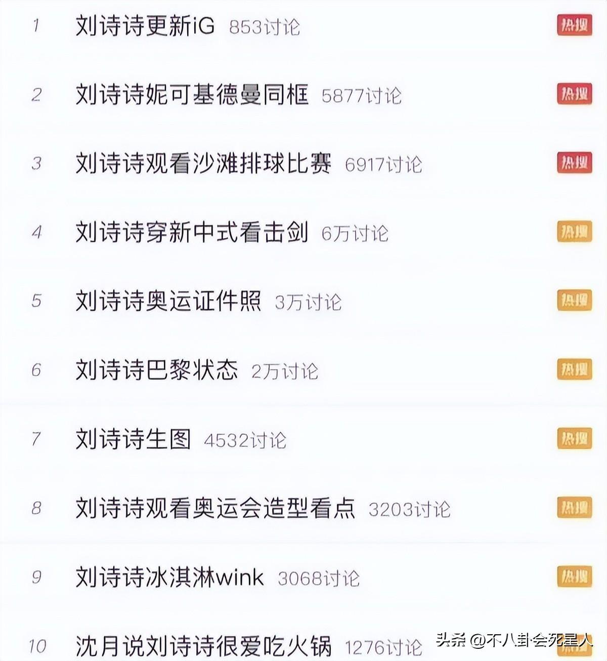 8月1日,劉詩詩潘展樂同框合照登上熱搜,再度引發質疑,被說是蹭熱度。有網友說這個熱搜不妥,居然把劉詩詩名字放在前面,奧運冠軍名字在後面。