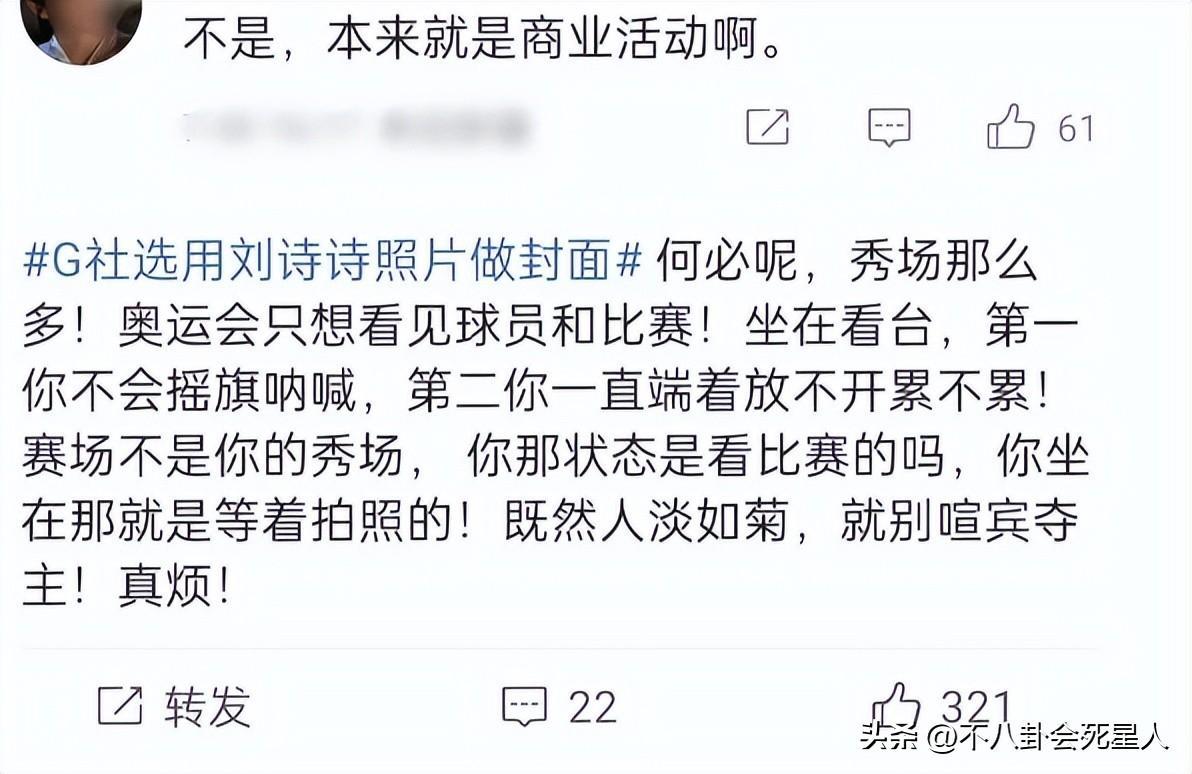 畢竟現在運動員們才更受關注,劉詩詩去到現場觀看比賽,本意也是爲運動員們加油,結果她上的熱搜比運動員們還多,被說把賽場當秀場。