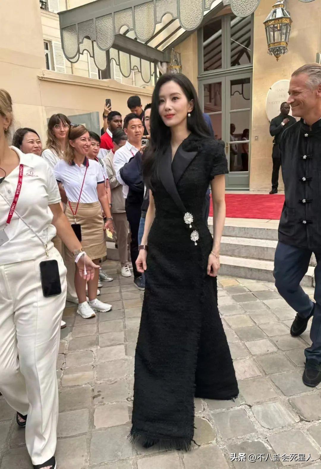 從第四套造型來看,劉詩詩身穿一條黑色禮裙,長髮披肩優雅大氣,生圖美得與周圍人彷彿不在一個同圖層。