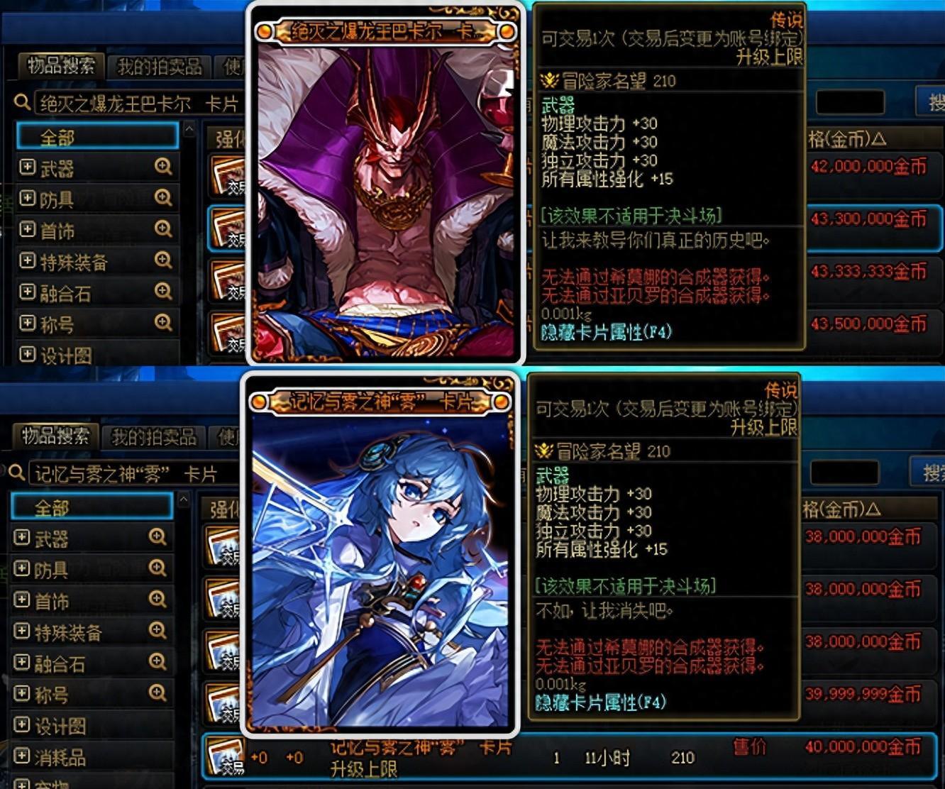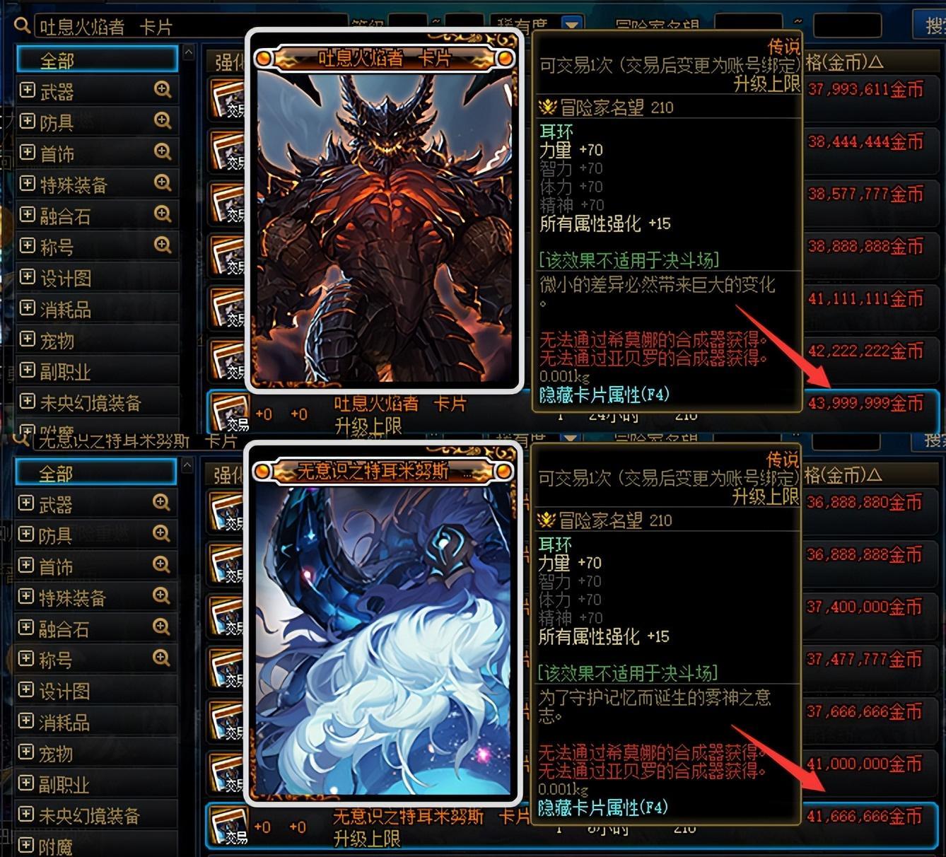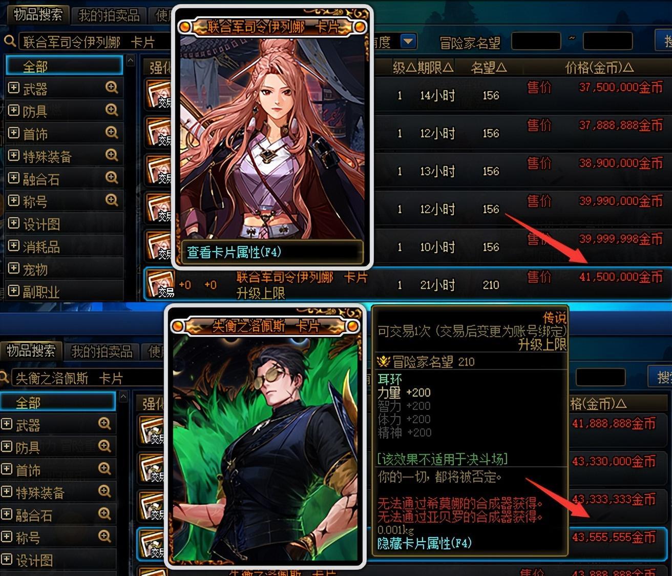 DNF未解之謎:3組卡片屬性一模一樣,價格相差300萬!
