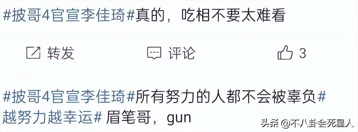 好傢伙,李佳琦這是自己在提“努力梗”啊,《披哥4》開播後,雖然他的鏡頭不多,但還是遭到了一衆網友的抵制,聲稱有李佳琦就不看節目,希望把李佳琦踢出去。