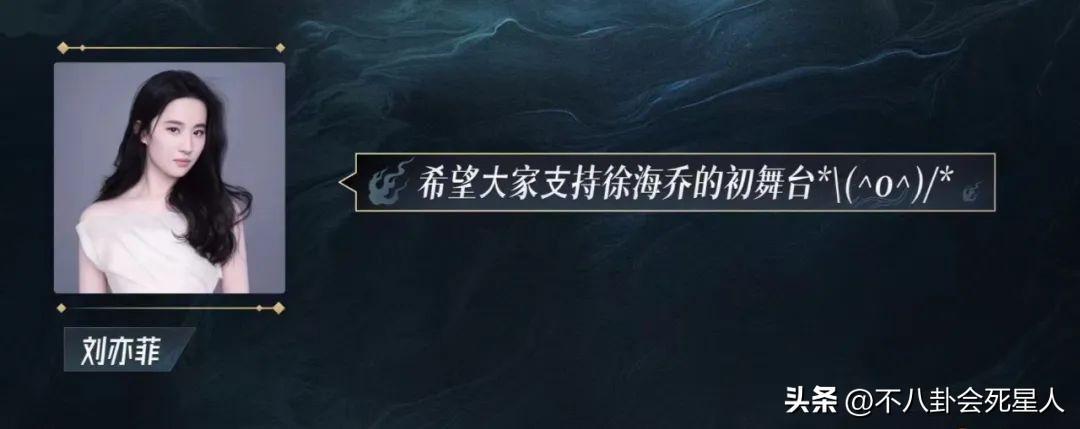 在之後的場外打call環節,劉亦菲發來語音,爲徐海喬加油打氣,徐海喬的笑容收不住,自稱“人生贏家”,這波又讓他爽到了,真是追星成功了。