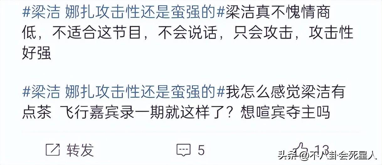 不少人吐槽梁潔太沒情商,作爲飛行嘉賓一來就這樣說別人,顯得沒禮貌,還有人質疑她是想喧賓奪主。