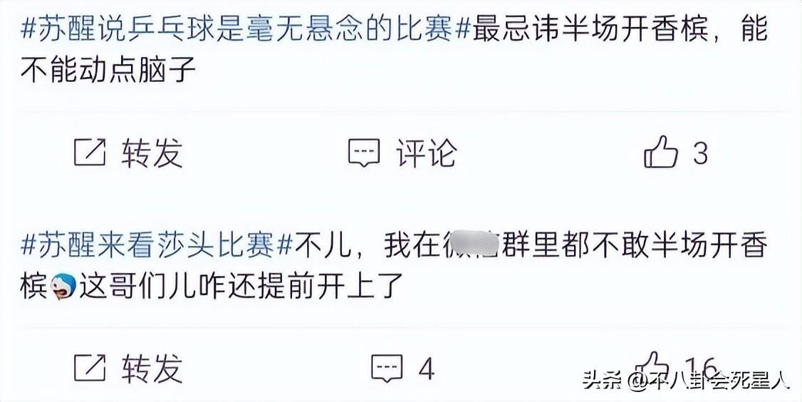 相比前幾位的捱罵,甦醒被罵的爭議聲很大,有人覺得他活該被罵,也有人覺得他被罵很冤枉。事情是這樣的,甦醒發文稱,“來看一場毫無懸念的比賽”。