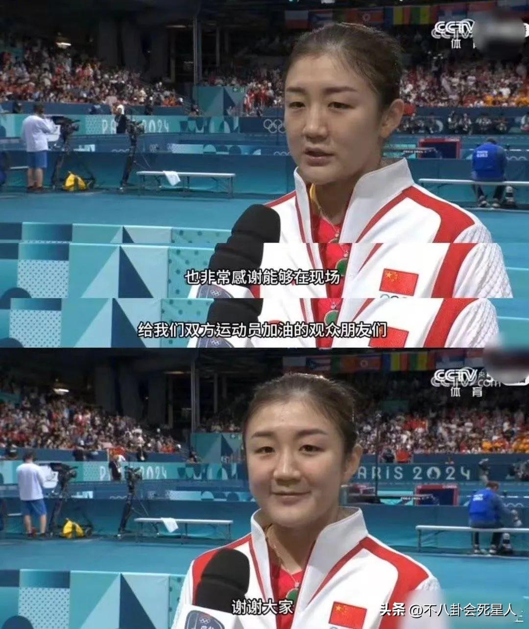 陳夢在採訪中說她和莎莎沒有失敗者,大家都竭盡了全力,自曝3年和莎莎比賽,她好像就贏過兩次,大讚孫穎莎的打法,也感謝了現場爲雙方加油的觀衆,這個回應真的很大氣,有格局了。