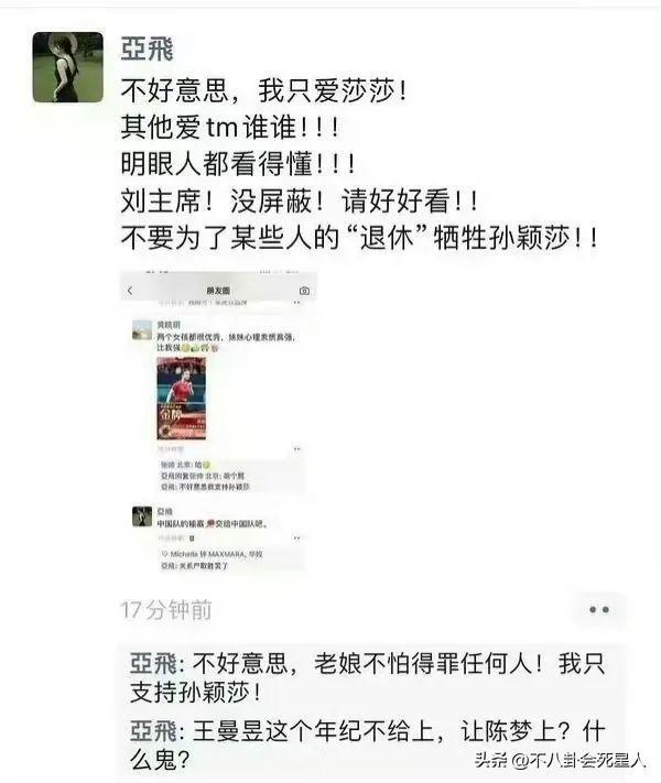 除此之外,黃曉明還在另一個平臺發文祝賀,他說兩個女孩都很優秀,爲陳夢慶祝的同時,也誇讚了孫穎莎。然而,他的這條動態卻被一個叫唐亞飛的“朋友”吐槽了,唐亞飛在黃曉明慶祝陳夢的動態下面爆粗口罵人,還留言稱,“不好意思我只支持孫穎莎”。