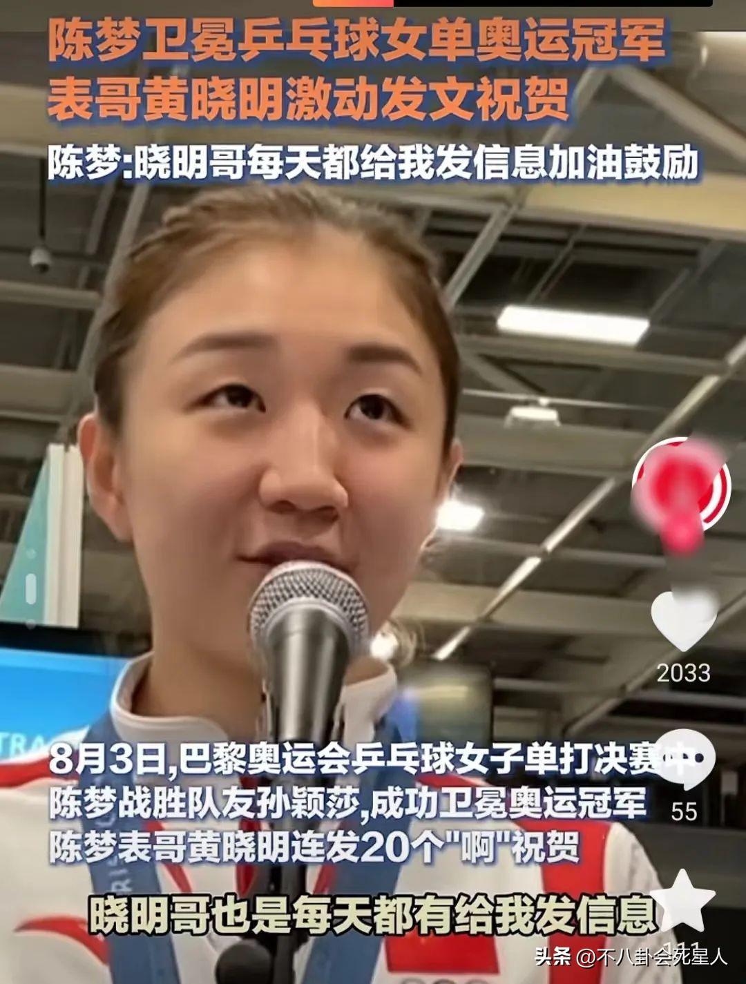 8月3日晚,陳夢在巴黎奧運會乒乓球女子單打決賽中,擊敗隊友孫穎莎,奪得冠軍。