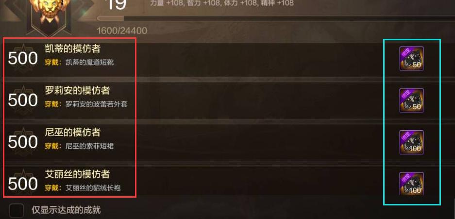 通關某些地下城,打掉一些指定房間中的精英怪,就可以解鎖成就任務,從而來提高成就等級,增加角色四維抗魔值