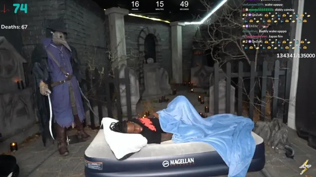 在《艾爾登法環》大型DLC《黃金樹幽影》剛發售的那段時間,坐擁1264萬粉絲的Twitch平臺頂流主播KaiCenat曾經舉辦過一場直播馬拉松,不通關不下播的那種。
