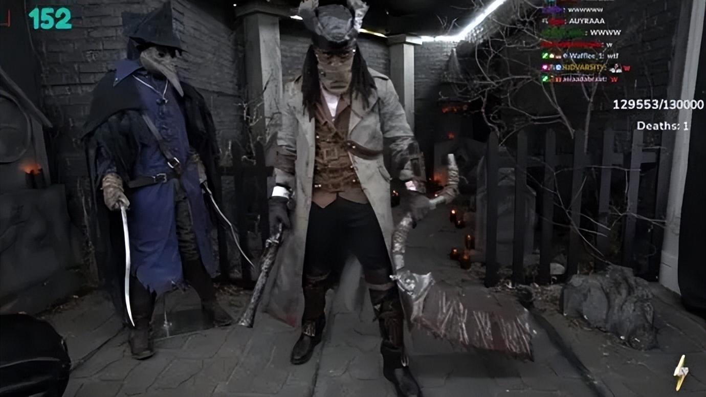 儘管已經是近10年前的遊戲,但Kai在直播《血源詛咒》時還是給予了這款遊戲高度尊重,不僅在直播開始前煞有介事地拍攝了一段真人預告,還把自己的直播間改造成了《血源詛咒》的建築風格,Kai本人也穿上COS服化身獵人出戰,看得出來他們爲這場直播花了不少心血。