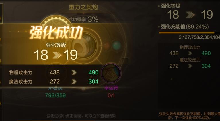 而如果你運氣比較好,充能值只有50%就強化到了20,繼承過去反而會變成強化19,所以大家在強化19的時候可以多攢一波充能值。