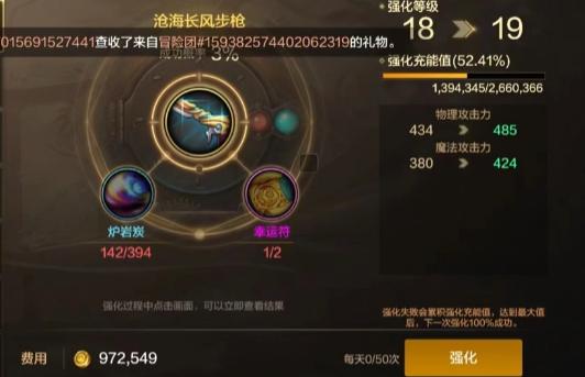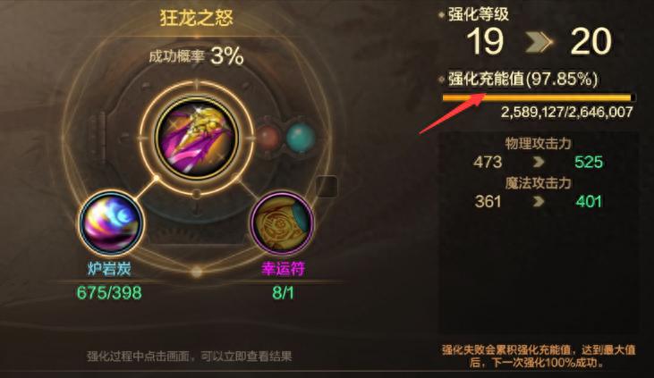 如何才能保證繼承過去依舊強化20呢?當你強化19充能值達到55%之後,此時強化成功到20,那麼繼承過去依舊是20武器;