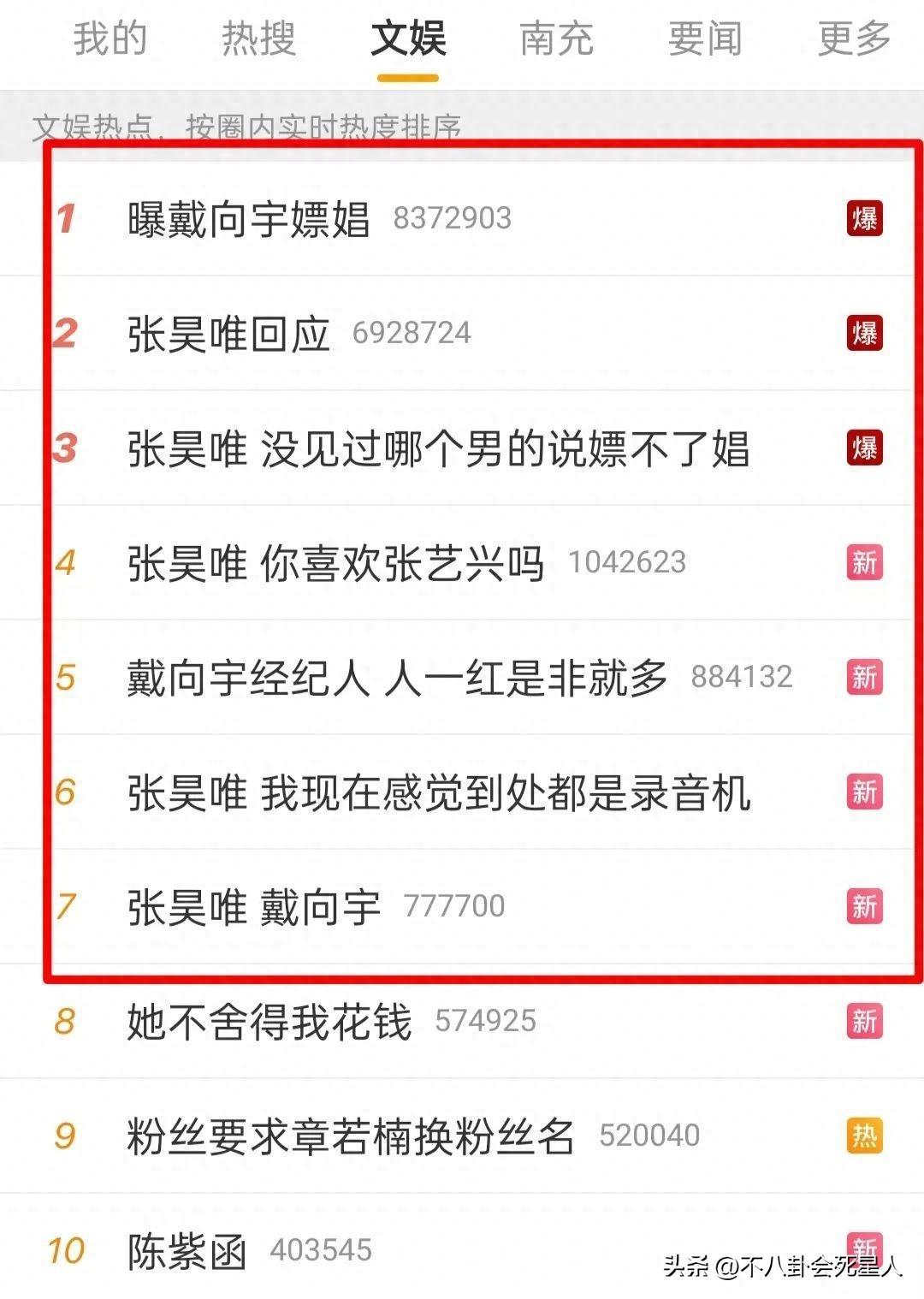 8月6日,演員戴向宇疑被張昊唯爆料嫖娼,錄音流出火速登上多個熱搜,引發關注和討論。