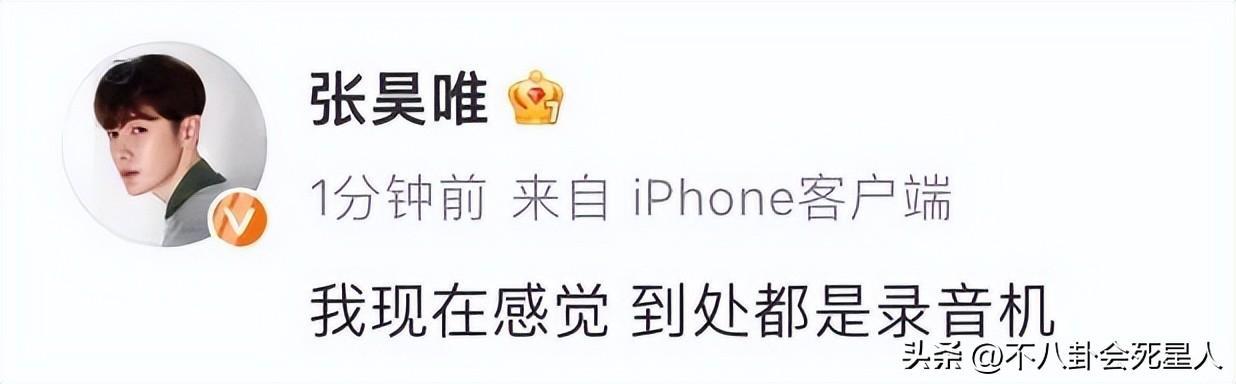 因爲錄音中張昊唯詢問女生是不是喜歡張藝興,女生說不喜歡,此事曝光張藝興無辜躺槍。隨後,張昊唯又發文稱感覺生活中到處都是錄音機,並沒有向張藝興道歉。