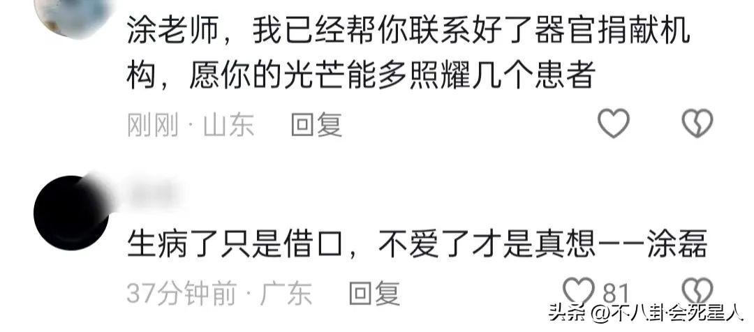 看到塗磊生病住院,還在積極地發表心靈感悟,原以爲評論區網友們都會誇讚他心態好,祝他早日康復,沒想到評論區卻出乎意料、令人心寒。