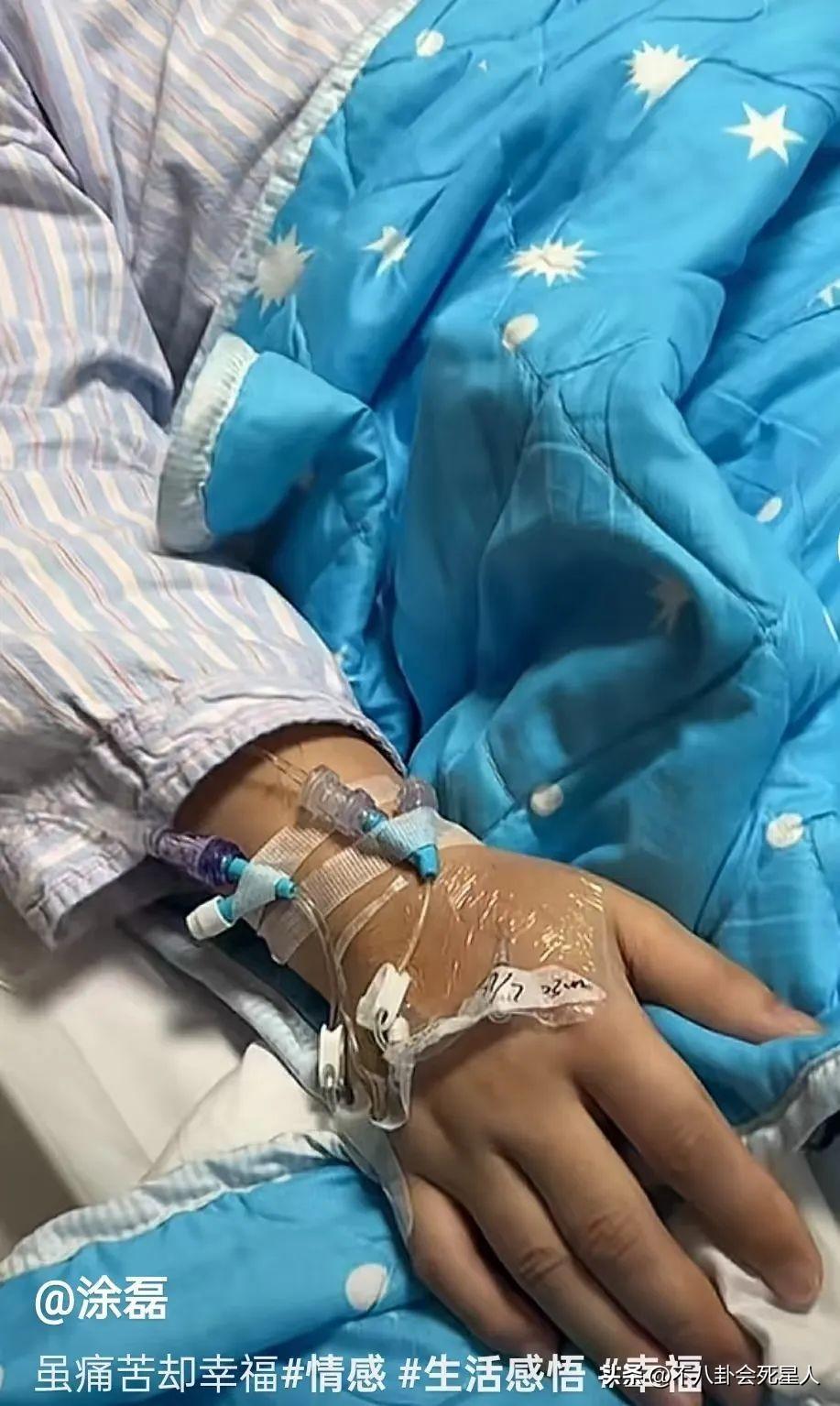 他的手上扎滿了針管,看起來情況有點複雜,生病住院的塗磊,與平時印象中的精神抖擻的他截然不同,如今整個人顯得很虛弱。