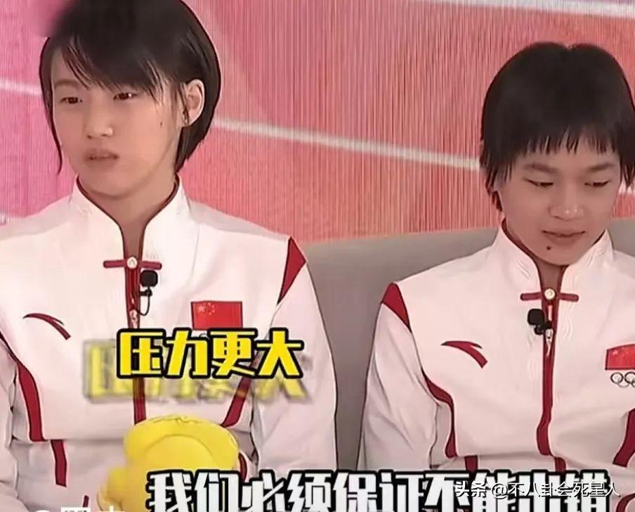 當被問到覺得單人壓力大還是雙人壓力大,全紅嬋說“單人壓力大,雙人因爲旁邊有陳芋汐,她跟我一起跳,會覺得比較踏實”。