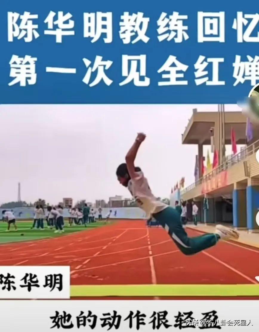 2014年,7歲的全紅嬋在學校操場玩跳格子游戲,被啓蒙教練陳華明發現,陳華明說第一眼看到全紅嬋蹦跳,就發現這個孩子跳得很輕盈,從而開始接受跳水訓練。