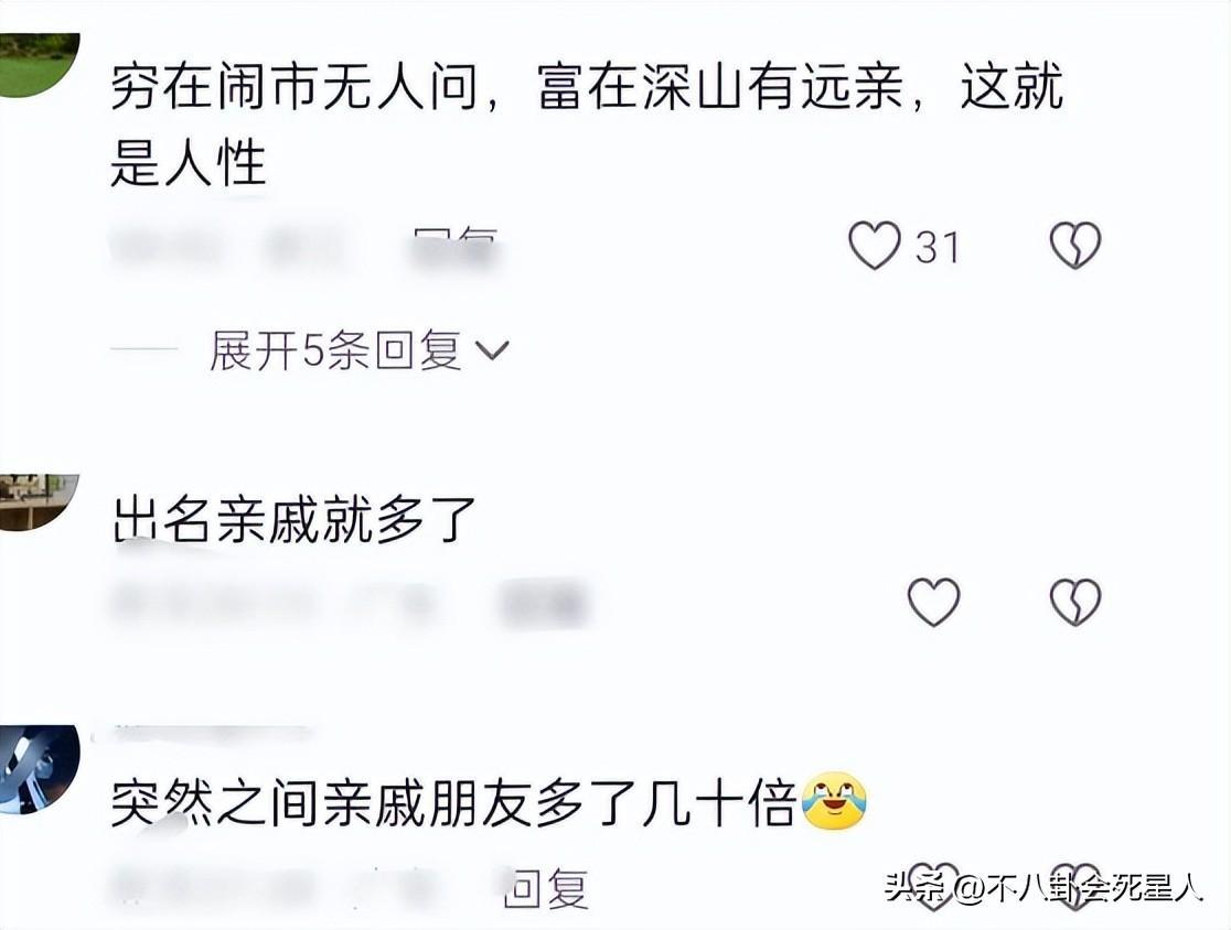 評論區很多網友都說這是人性的現實,出名了認親的就多了,很多人都想過來沾光。