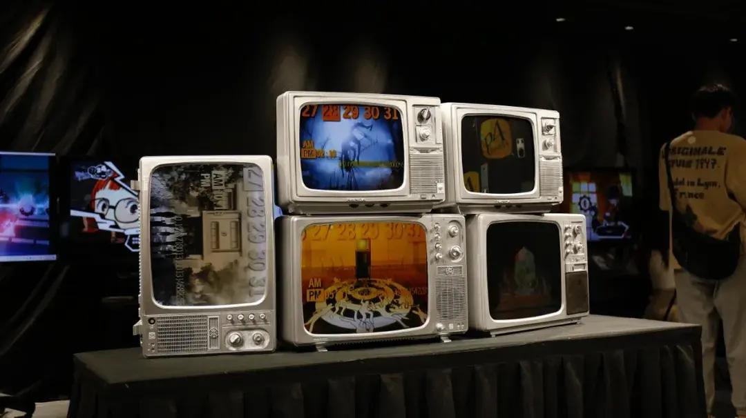 比如在活動會場中央,就擺着五臺“老電視”一同播放着P4的片頭,致敬了這款遊戲的主題與片頭動畫裏的經典一幕。