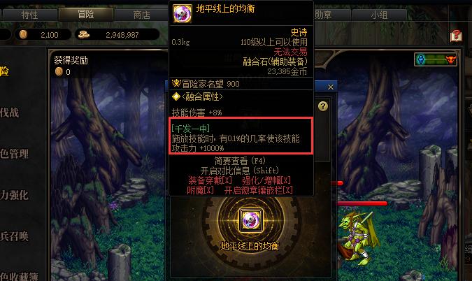 技能傷害+8%,釋放技能時有0.1%概率讓該技能增加1000%攻擊力!