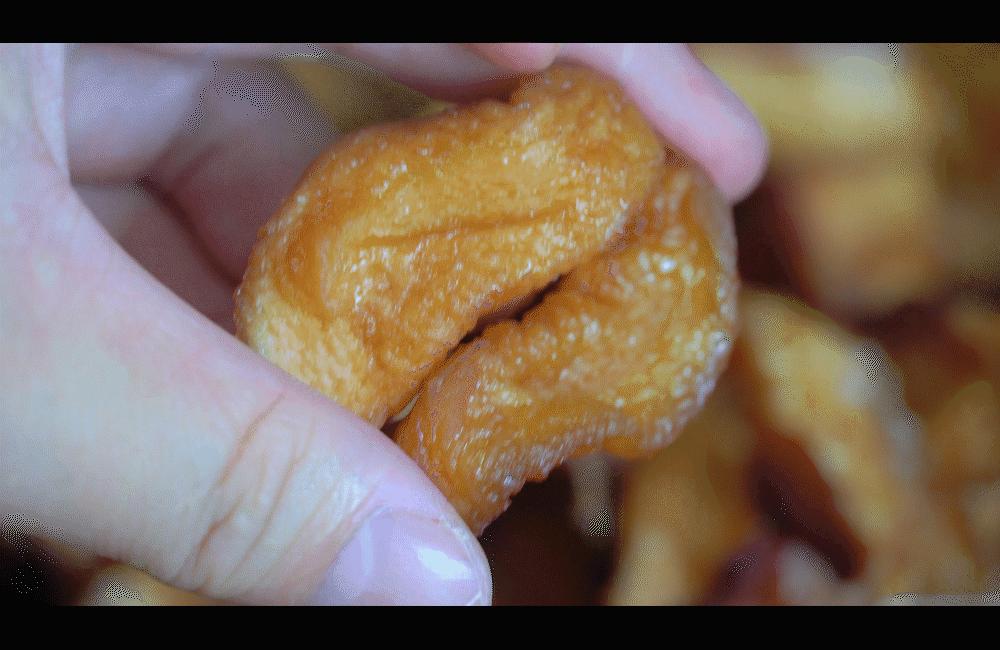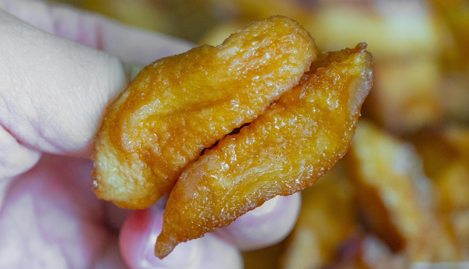 像這樣桃子幹就做好了,軟糯勁道,非常的香甜,拿起來是軟軟的,但喫起來又有點勁道。