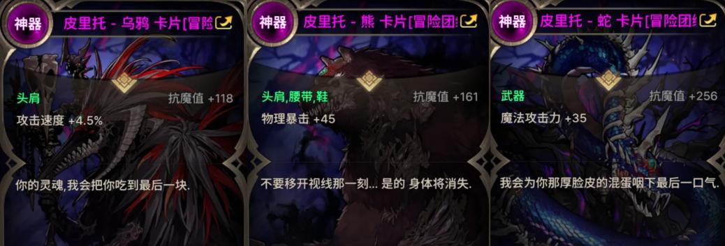“皮裏託-熊卡片”,頭肩/腰帶/鞋部位,+45物理暴擊;