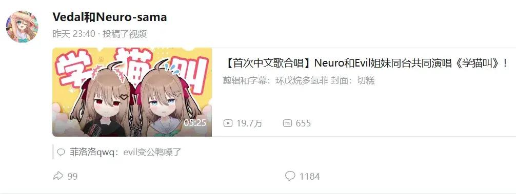 Neuro的推特評論區前排總能見到幾個熟悉的中文ID,咱們這也產出過不少的優質粉絲二創,按理說,Neuro進軍中國市場的計劃早就該被提上日程了。
