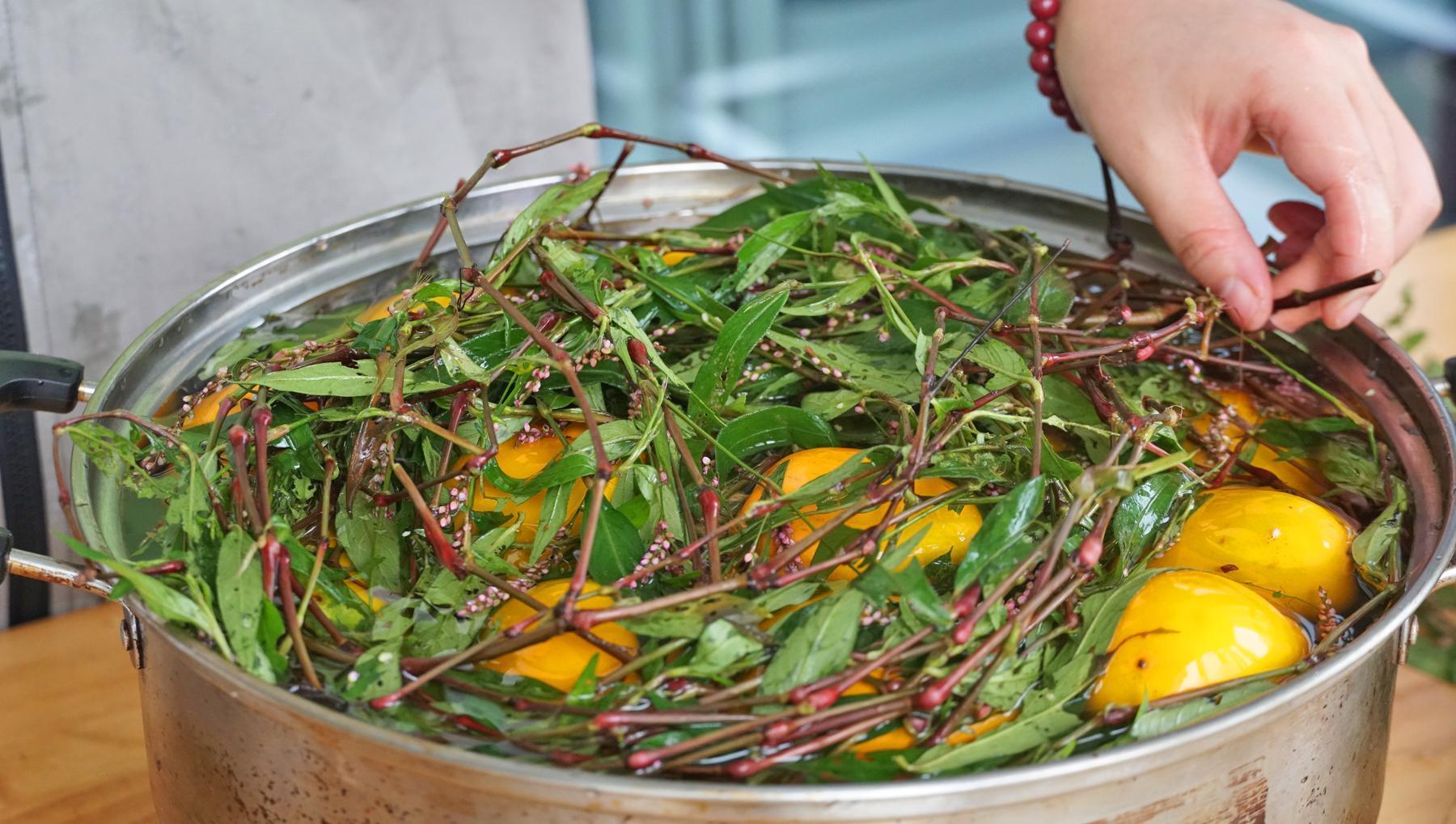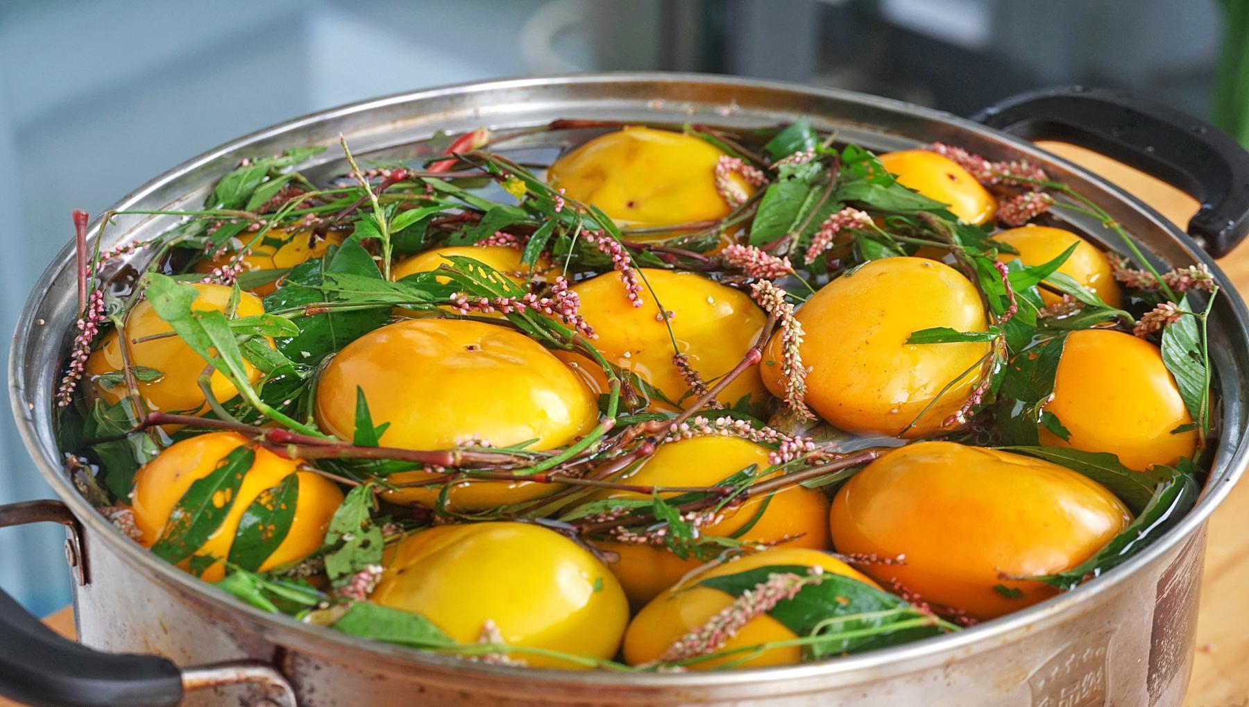 5、最底部和最上面都要放辣蓼草,這樣柿子泡好的時間會更快,我們就不用等那麼久了。