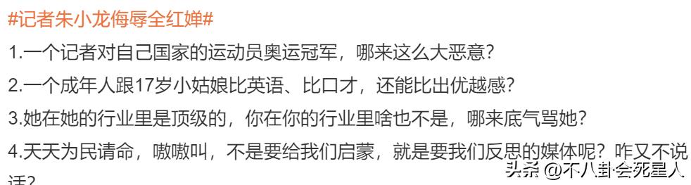 這位所謂的體育記者不但讓人感覺他對奧運冠軍的“惡意”,他說出來的話也讓感覺到他作爲媒體的“膚淺”。