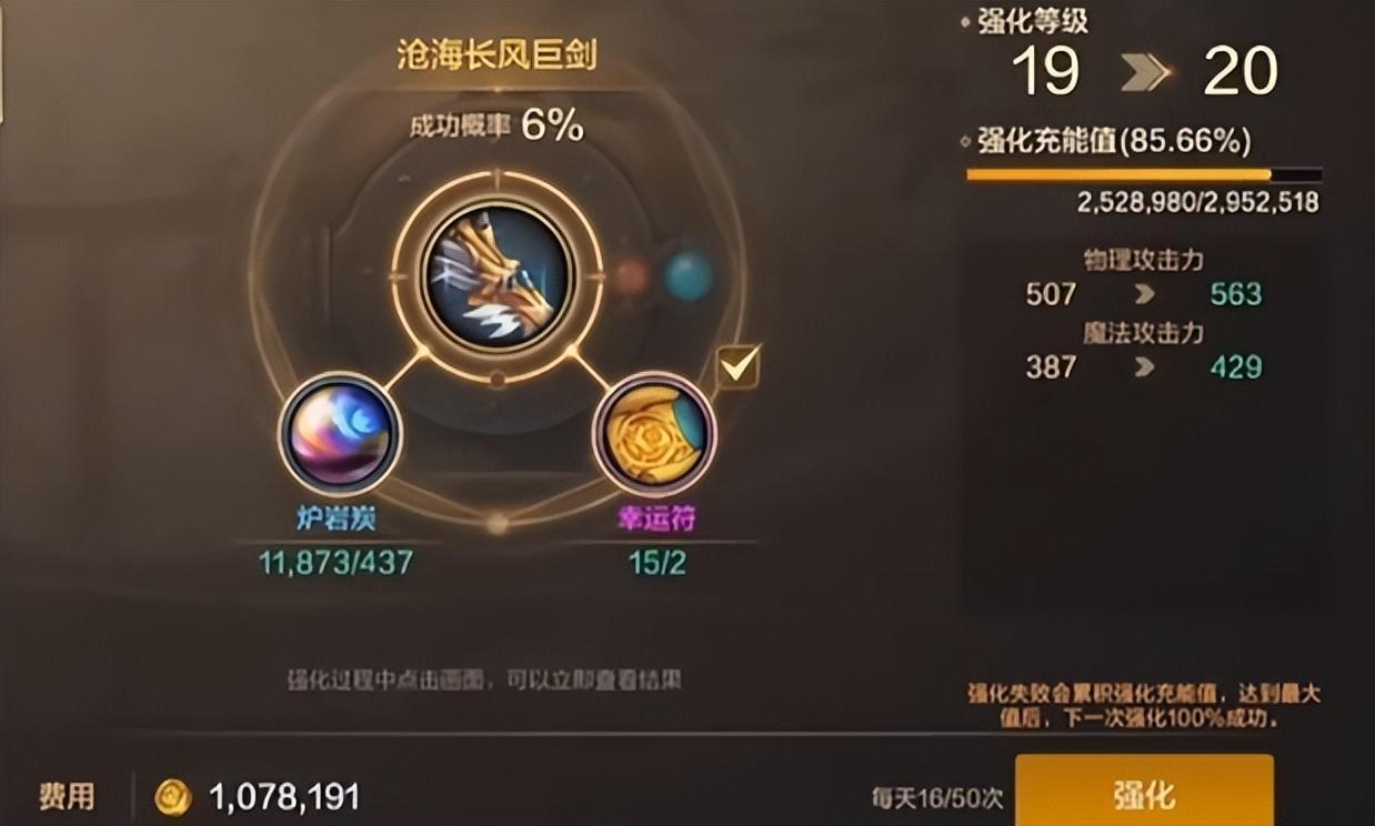 當然這只是理論而已,強化20需要太多的碳和幸運符了,咱們普通玩家強化到16/17就差不多了。
