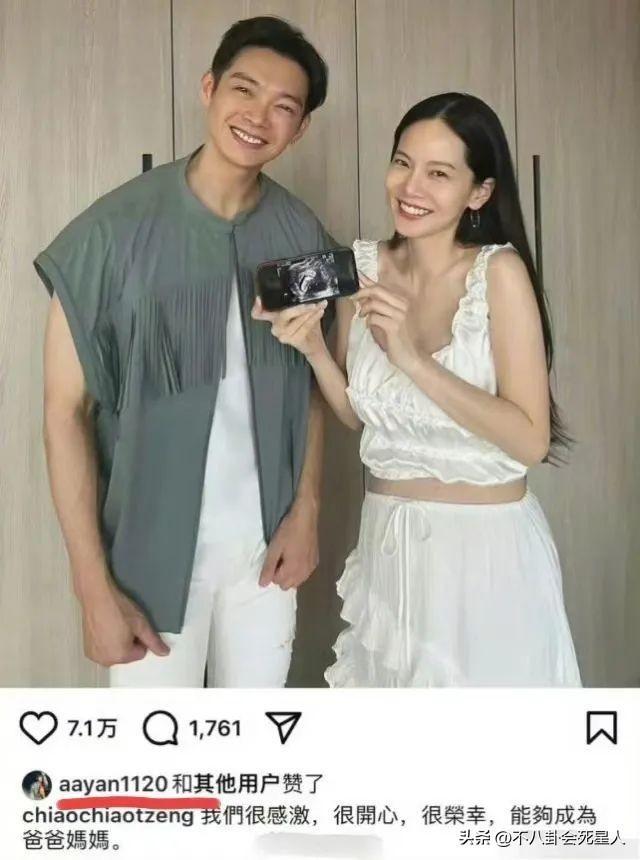 同時,曾之喬曬出一張她和老公辰亦儒的合照,照片上二人笑容燦爛,曾之喬懷孕了身材依舊很好,四肢纖細腹部隆起,她手上拿着寶寶的腳丫子影像,一臉幸福。