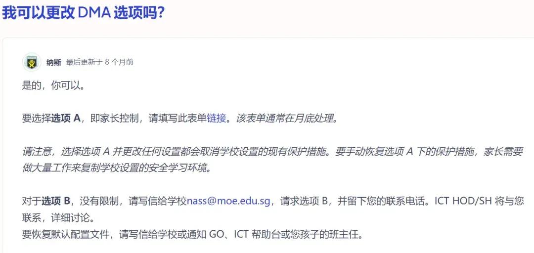 之後幾年新加坡教育部也在不斷調整MG,例如在收到家長建議後,他們爲MG新增了家長模式,允許學校把課後的監管工作交給家長。