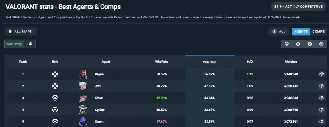 第九季第一幕芮娜選取率顯著上升,圖源網站vstats.gg