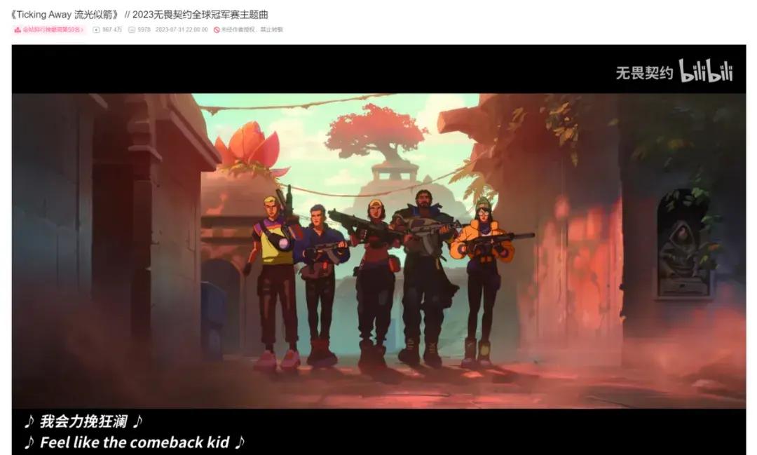 2023年全球冠軍賽主題曲《流光似箭》,僅在B站就取得了967.4萬次播放