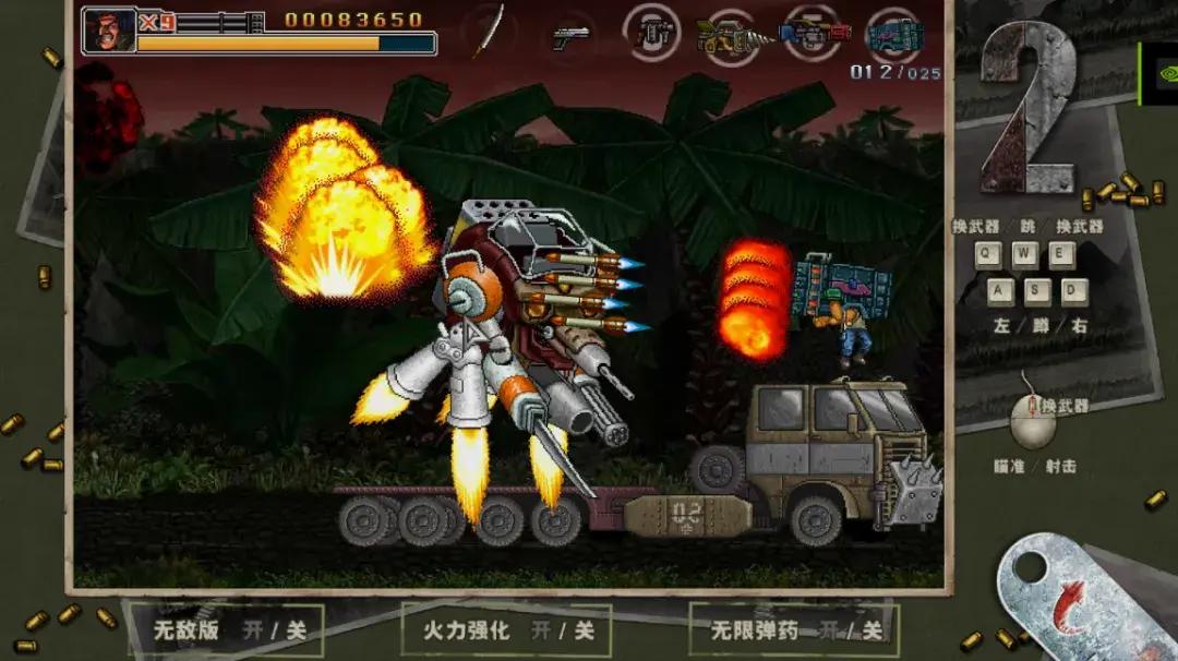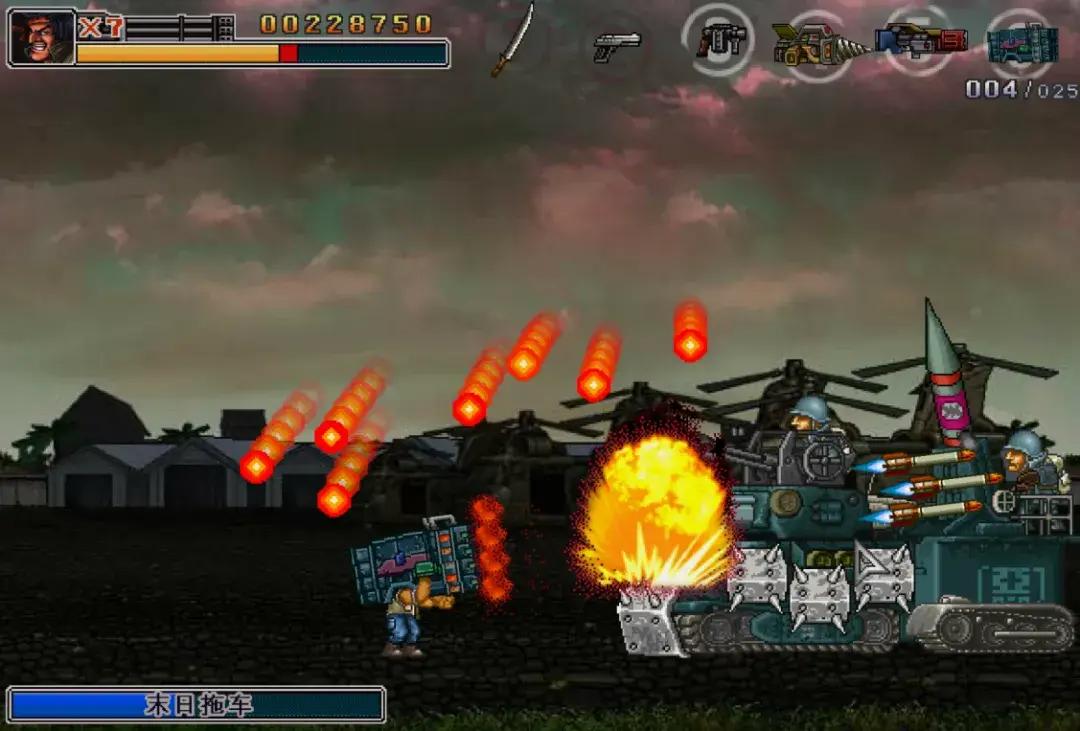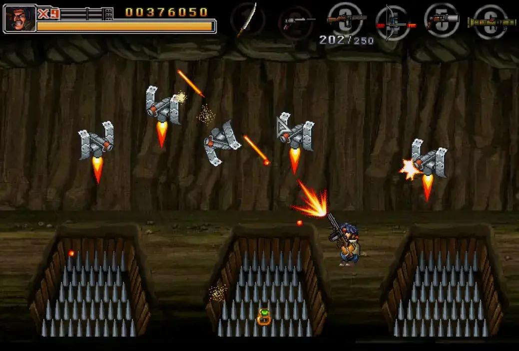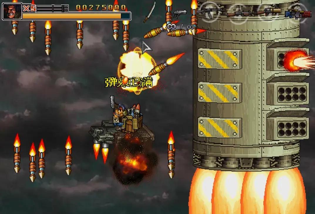 相較網上的版本,Steam版也做了不少優化和機制改進,許多地方其實都有意放了水,才讓我混了過去。像最後一關Boss戰,四節火箭中的第二節會發射導彈雨,在Steam版裏,被主角擊落的導彈會掉落數不清的血量和彈藥補給,大大降低了後兩節的攻略壓力。