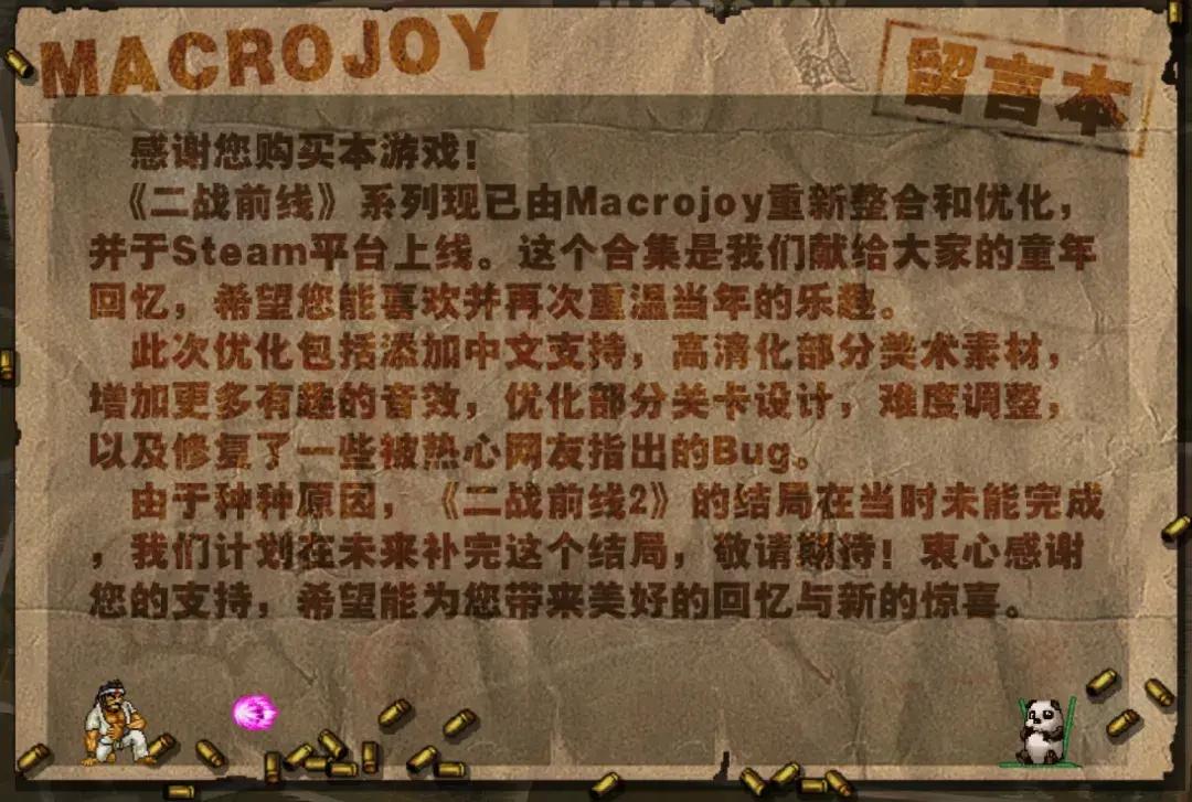 入手後,我一口氣把《二戰前線2》的12個關卡,或者說3個不同難度周目的4個關卡打通了,總時長也就3小時。我沒有依賴作者特地添加的無敵、無限子彈、子彈強化功能,雖然這裏理應誇一下作者知道玩家們想要什麼。