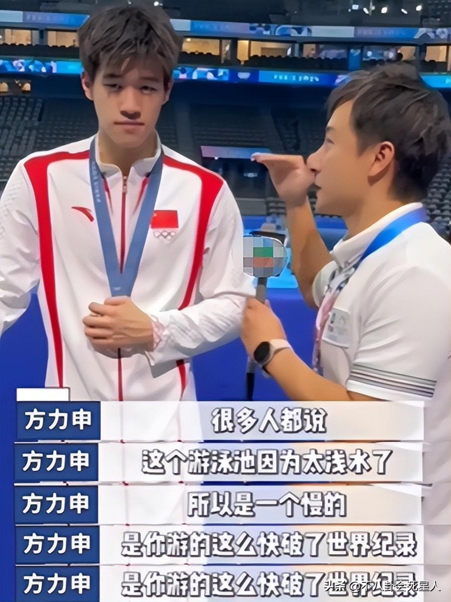 方力申在整個採訪中,不但充分表達了對奧運冠軍的讚美和尊敬,也就大家感興趣的專業問題提出了疑問,比如關於潘展樂被傳頻繁被要求做某種檢查的事情。