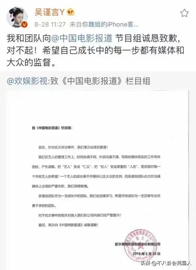 被如此點名批評,吳謹言所在公司立即發佈聲明道歉,吳謹言轉發說對不起,表示感謝媒體和大衆的監督。