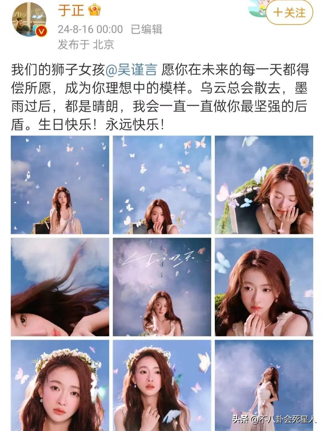 這麼多明星給吳謹言送生日祝福,好人緣一目瞭然,也反映出人情世故。此外,還有她的老闆於正,卡點發文爲其慶生,祝她在未來的每一天都能得償所願,表示他會做她堅強的後盾。