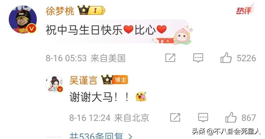 不僅如此,冬奧冠軍徐夢桃也過來留言,爲吳謹言送上生日祝福,二人暱稱十分有愛。