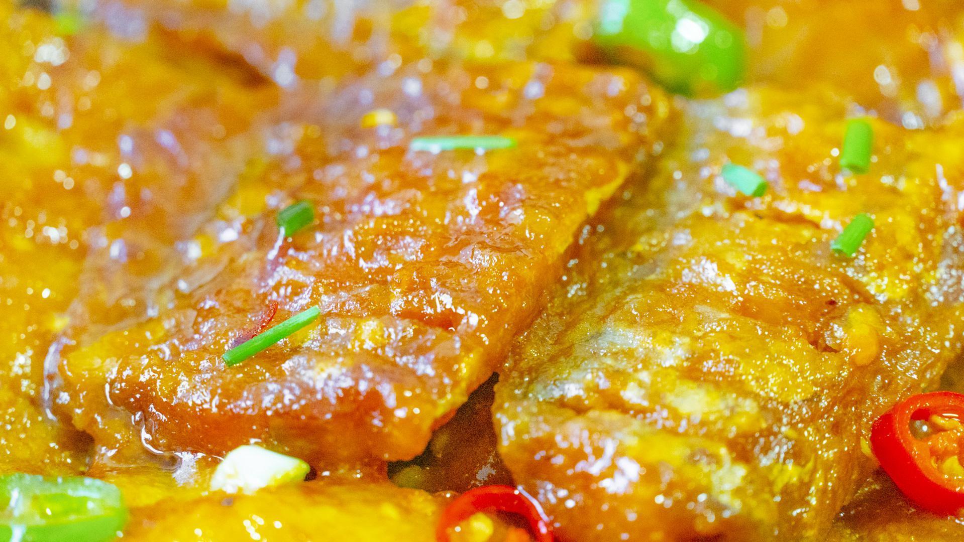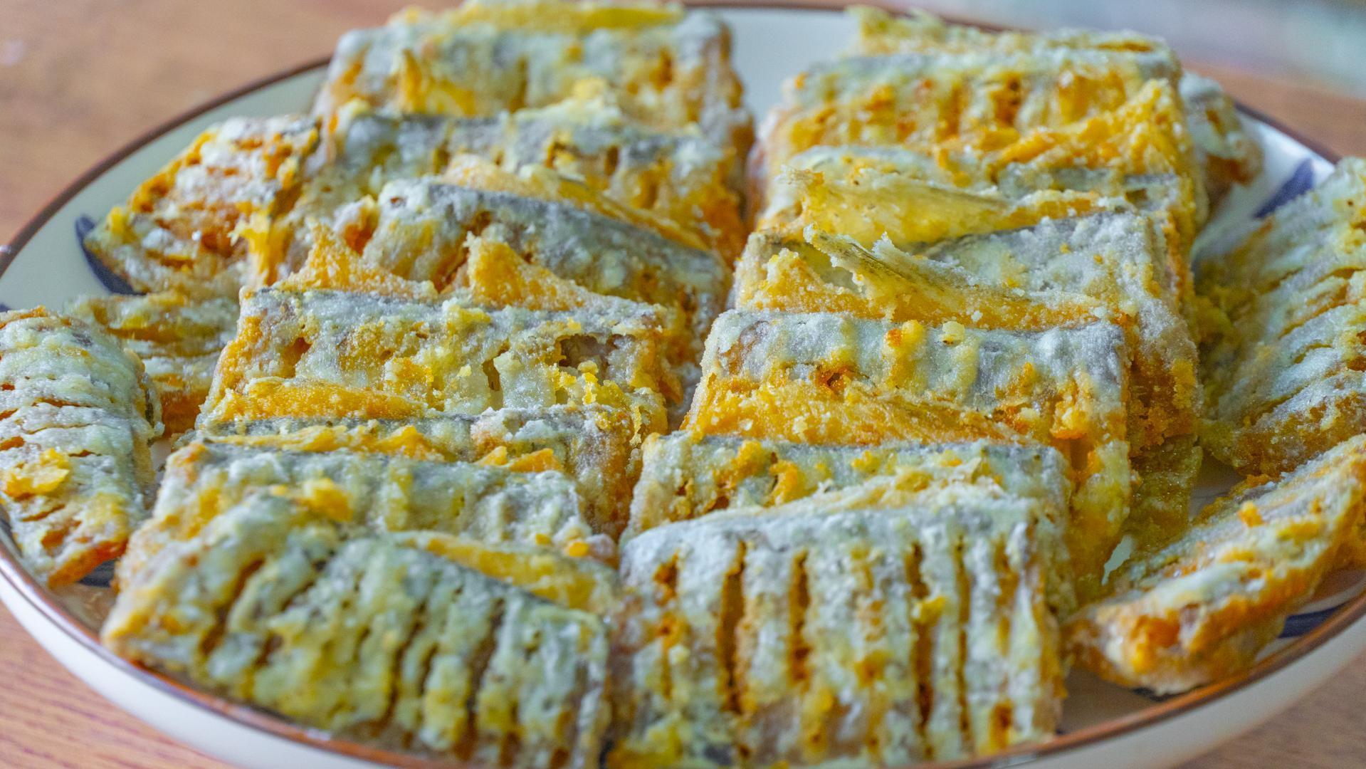 6、帶魚剛入鍋的時候,千萬不要着急用筷子或者是鍋鏟去翻動,可以端着鍋晃動幾下,等帶魚定型後再翻動,帶魚纔不會爛。