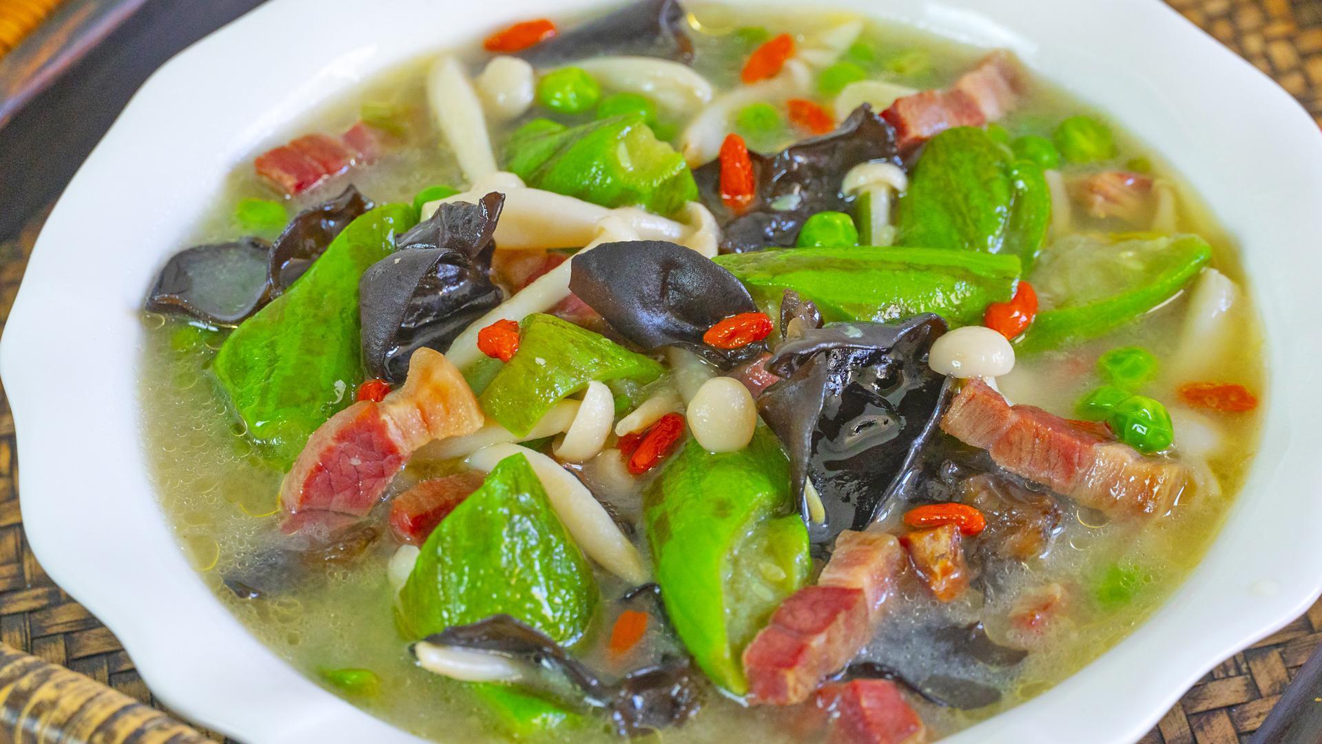 絲瓜含豐富的膳食纖維,多酚類礦物質、維生素C、B、蛋白質等,有助於腸胃蠕動,滋潤肌膚等。絲瓜屬於喜涼不喜熱的植物,食用的時間也比較長,可以從夏天喫到秋天。